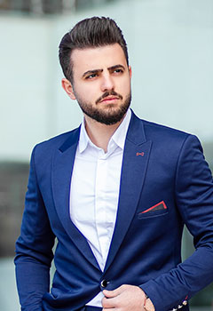 groom stands